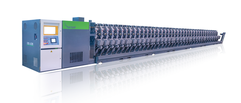 This machine performs tight rewinding on the loose yarn after the yarn dyeing process is completed. It is suitable for high-precision yarn clearing and split processing of the finished yarn of air-jet spinning. It has advanced electronic information technology such as intelligent control of the twisting cycle.